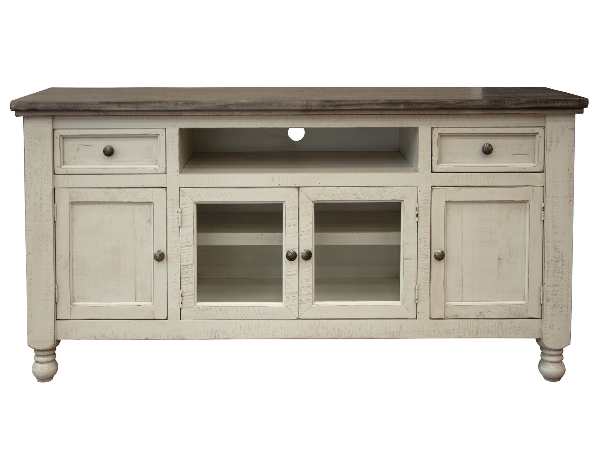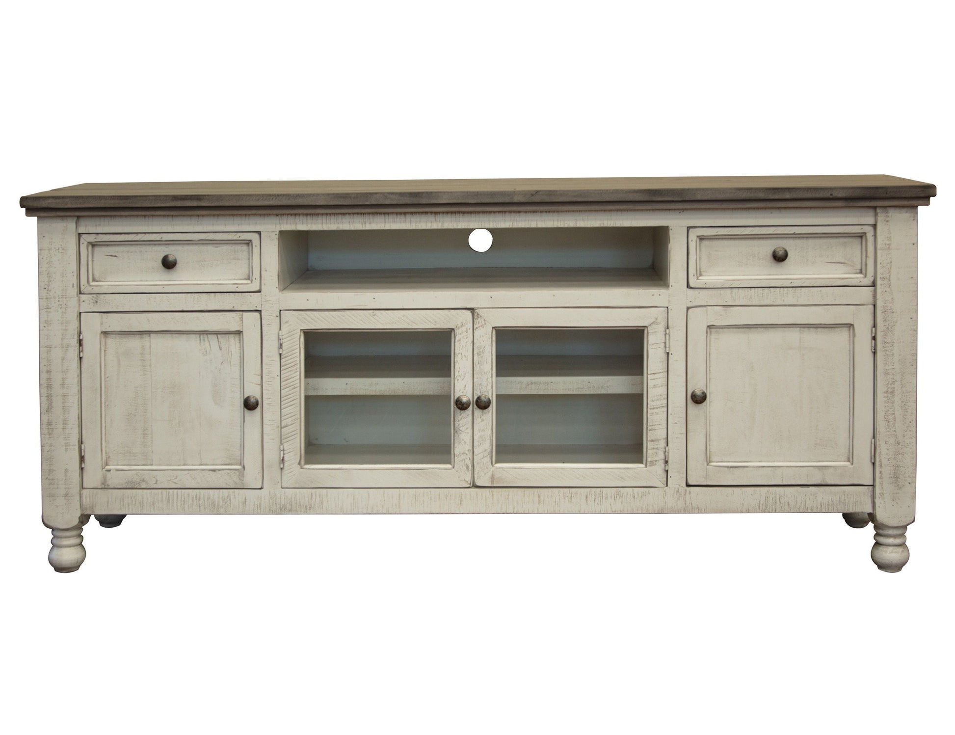 Stone TV Stand with 2 Drawers / 4 Doors – Antiqued Ivory